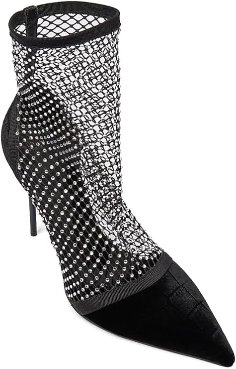 95MM Mesh & Velvet Ankle Boots, 6.5, Noir