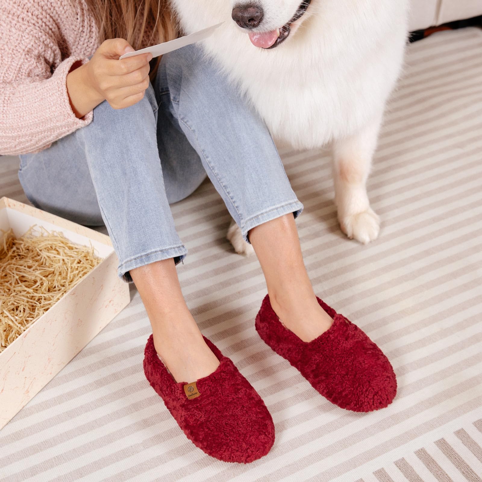 - Size Tips: These fuzzy slippers have warm lining. lf you have a standard foot type, choose your usual size. For wider and higher feet, it's recommended to go one size up for extra comfort