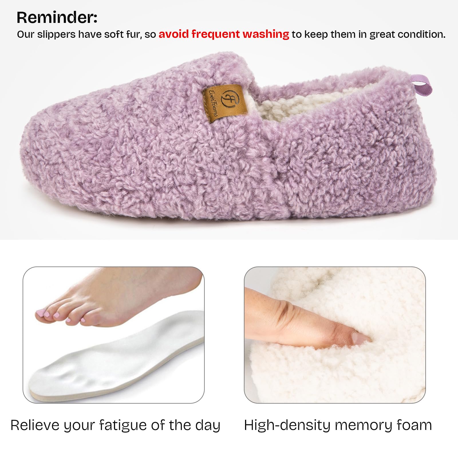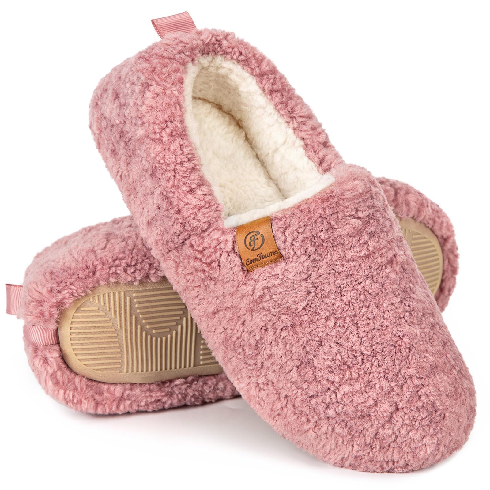 EverFoams Women’s Soft Curly Full Slippers Memory Foam Lightweight House Shoes Cozy Loafer with Polar Fleece Lining