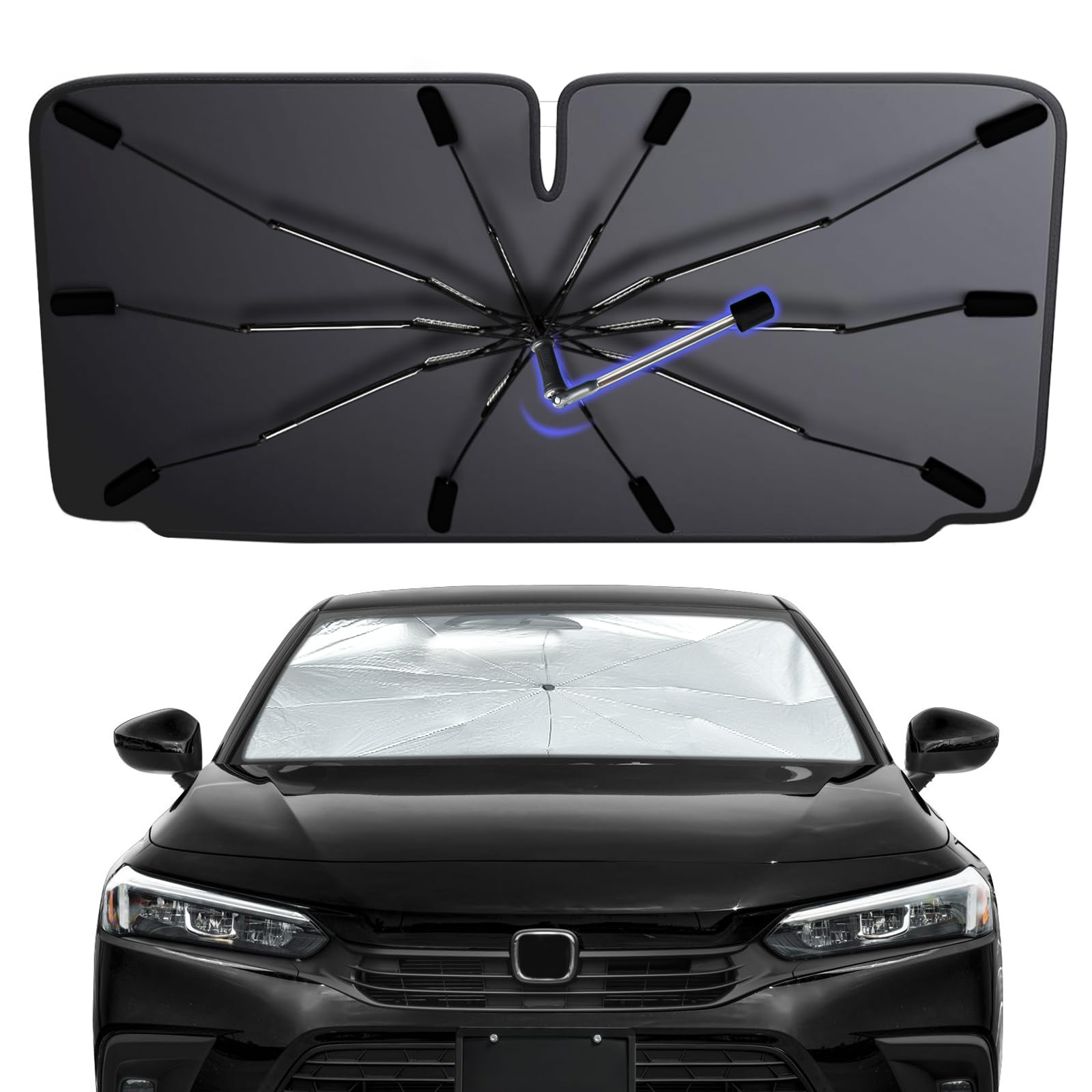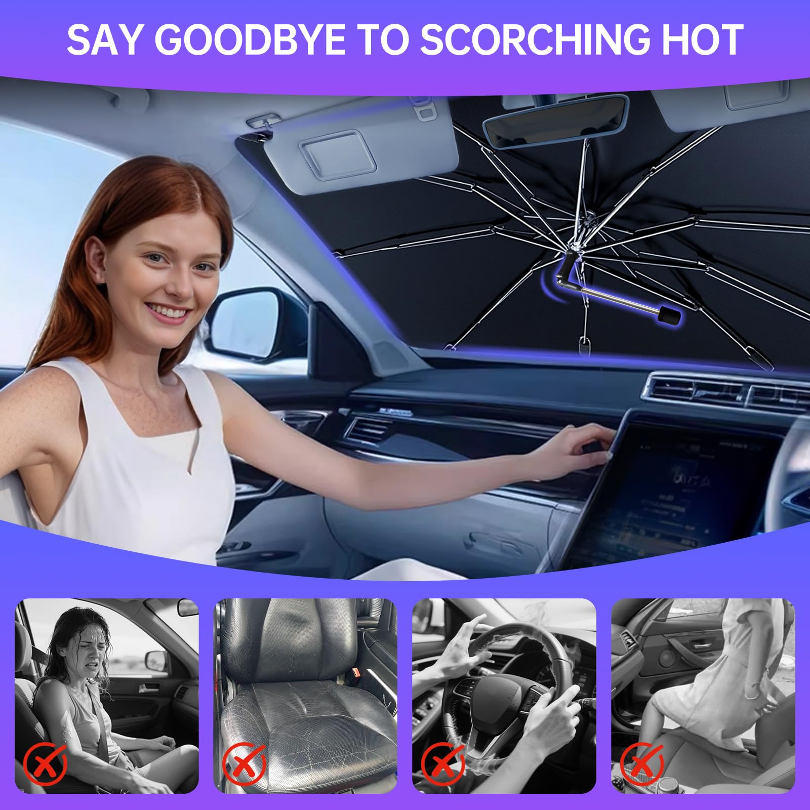 2025 Windshield Sun Shade Umbrella, Foldable Car Umbrella Sunshade with UV Block Car Front Window (Heat Insulation Protection) for Auto Windshield Covers Trucks Cars (Large)